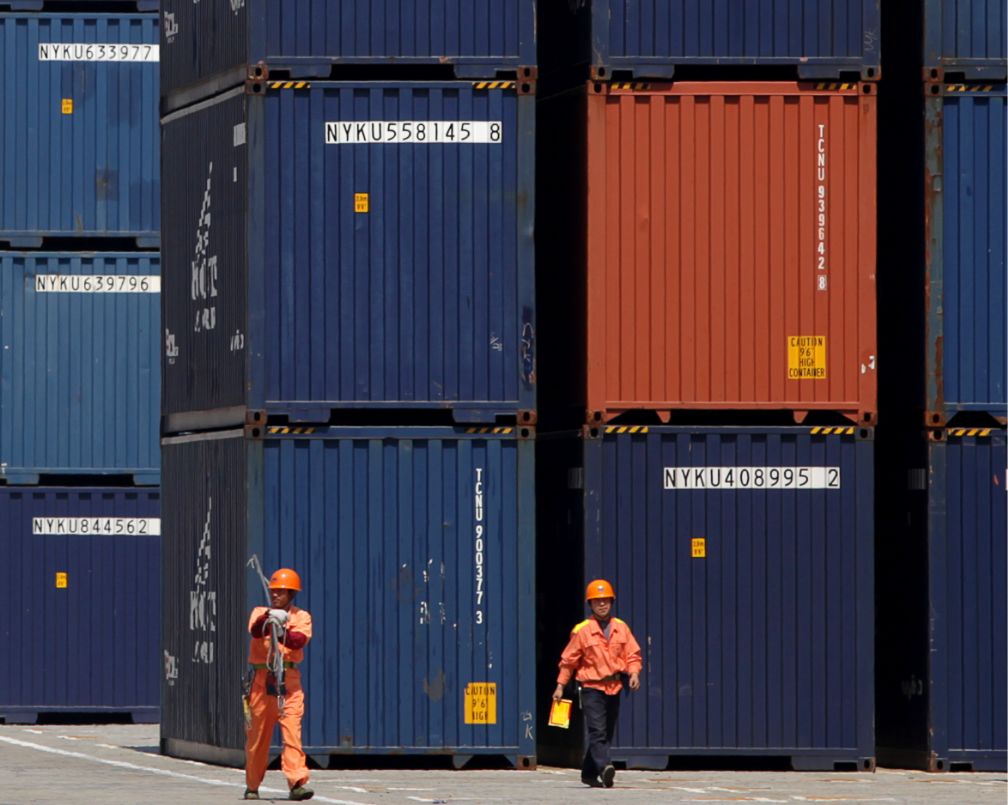 很簡(jiǎn)單,一般來說,緊密挨個(gè)兒的,是空箱;留縫兒堆放的,是重箱。